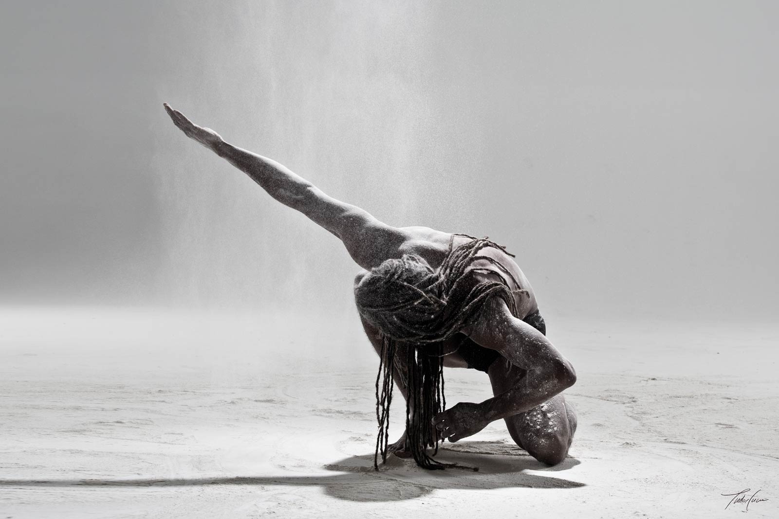 As Gaston Bachelard states in Water and dreams, “Imagination is not, as its etymology would suggest, the faculty of forming images of reality; it is rather the faculty of forming images which go beyond reality, which sing the reality. It is the faculty of a superhumaneness”: our imagination is made with matter, even more, this matter is imagination, because it gives it birth to it and nurtures it. Instead of an abstract world without substance, the elements become concrete through Momo’s dance, which embodies our relation to the world. To quote Bachelard once again, “the image originates straight from human consciousness, from the very heart of being”: the “Elements of life” simply dance this very image.