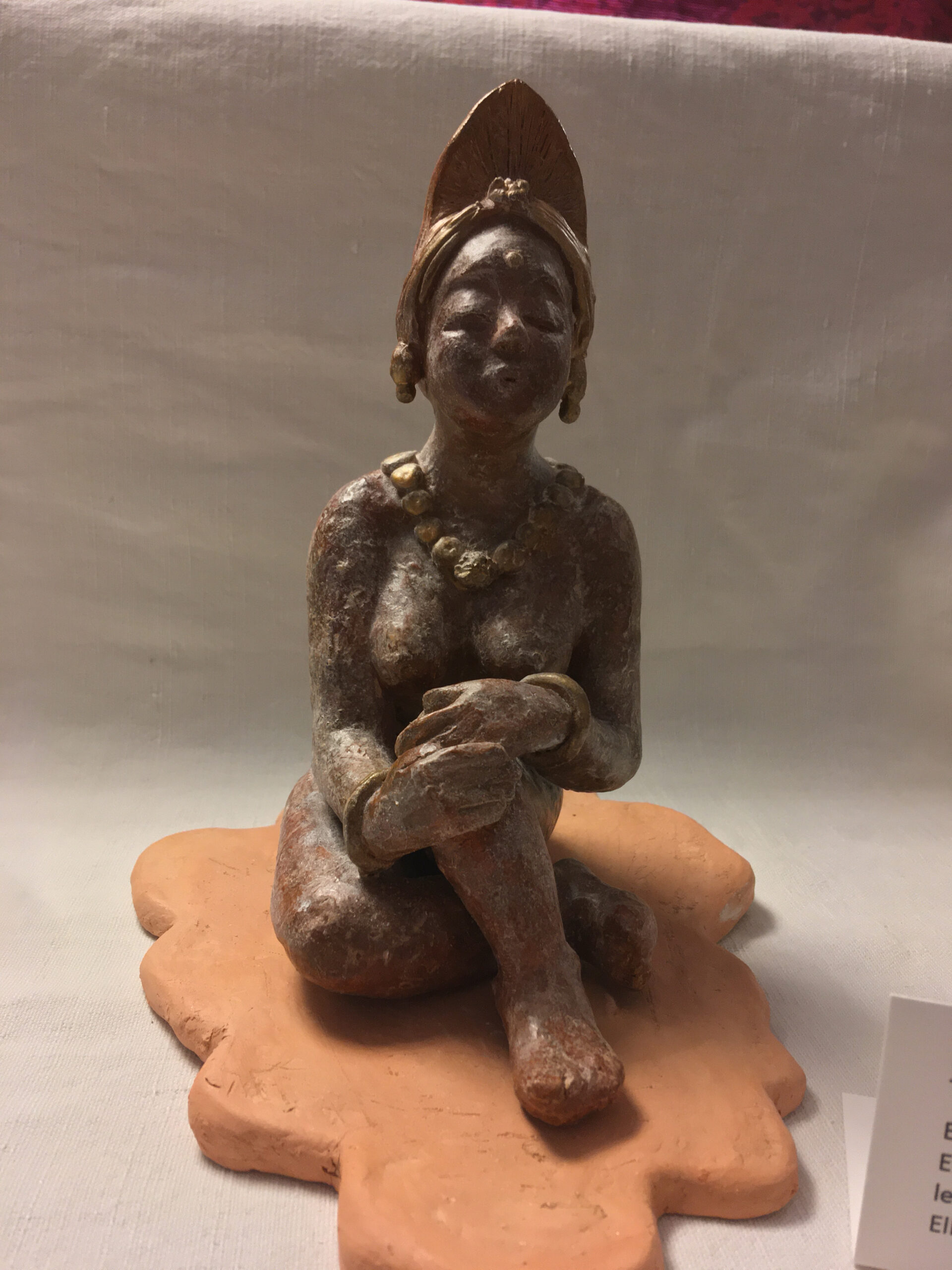 Au centre, “La rumeur”, une œuvre centrale et l’une des plus représentatives du travail actuel d’Elisabeth. Sur la droite, c’est la série des “Fabulettes” que l’on peut admirer : ours, mouton, vache, éléphant, chaque sculpture animalière vient livrer avec délicatesse un secret pour nous autres humains. Un secret de sagesse et d’émotion que l’on saisit comme souterrainement, dans un regard suggéré, un sourire esquissé, un murmure presque audible. “Chaque morceau de terre raconte une histoire, explique Elisabeth Lopes. Il suffit d’écouter…”.