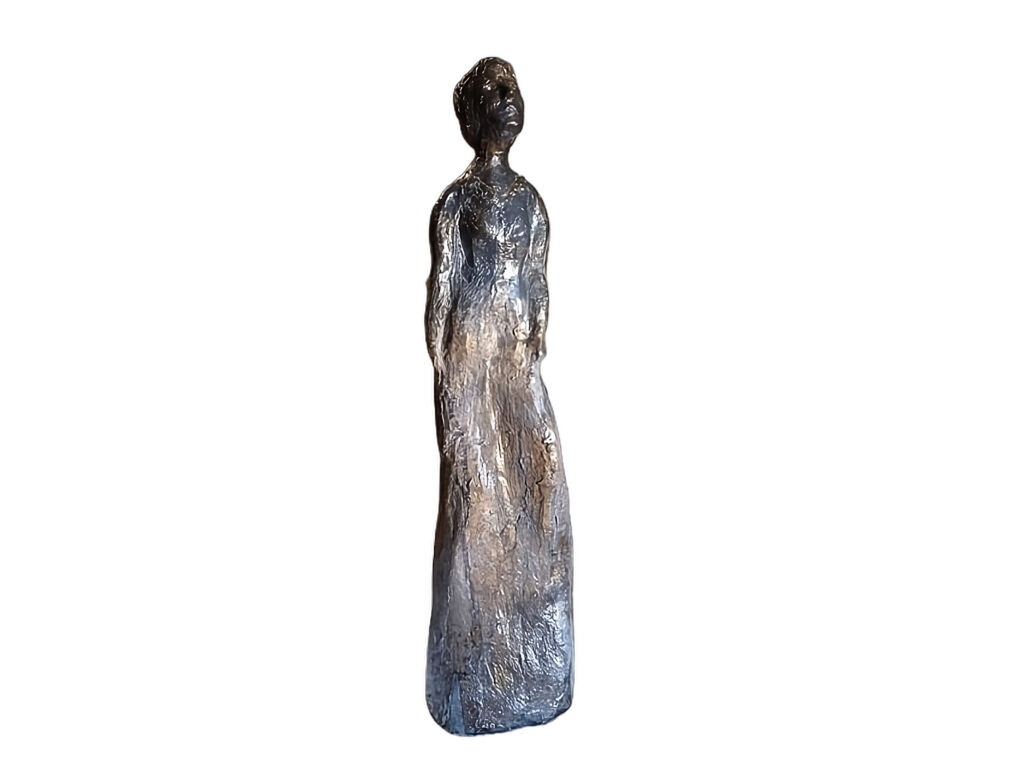 Debout dans la lumière. C’est à l’occasion de DropArt que j’ai fait la rencontre de cette sculpture. Pendant une semaine (6-14 septembre 2025), des artistes ouvrent leur atelier et bien que je connaissais déjà les œuvres d’Elisabeth Lopes, je n’avais jamais visité ses expositions.