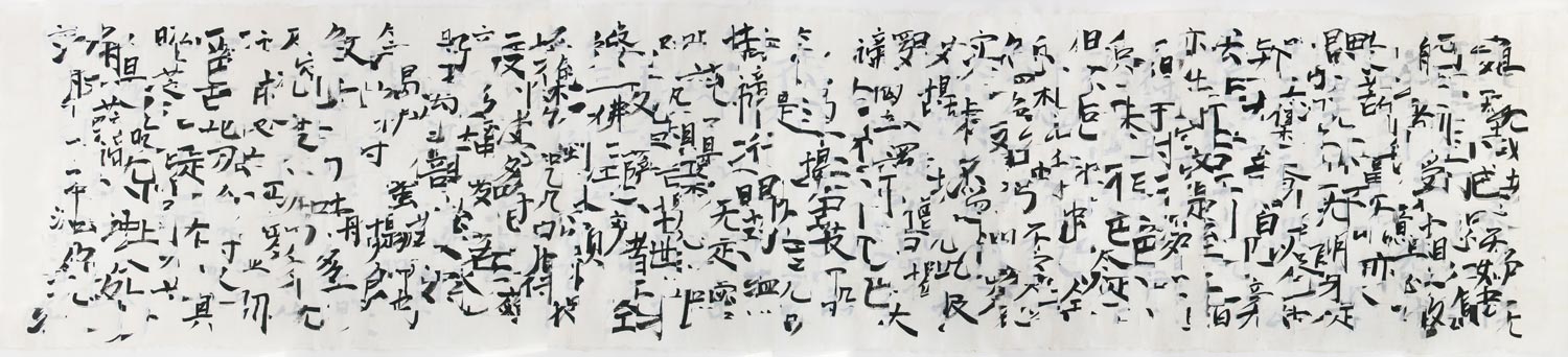 « En récitant le Sutra du coeur », encre sur papier, 12″ x 98″, 2013